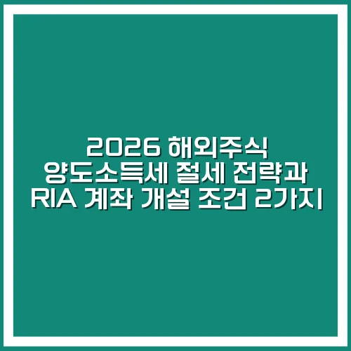 2026 해외주식 양도소득세 절세 전략과 RIA 계좌 개설 조건 2가지 개요
